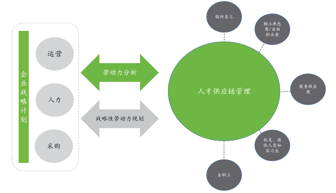人才供应链管理(Talent Supply Chain),即以业务需求为导向,在控制成本的基础上,整合人力资源管理各个模块的职能,精准进行人才需求预测、人才供给,让雇员、能力、职位迅速匹配,实现组织人才队伍建设的动态平衡和长期优化。
