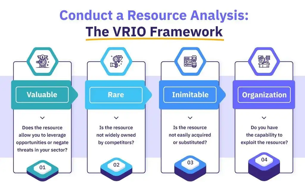 美国管理学教授Jay B. Barney开发了 一套"VRIO"框架,这是一种战略工具,可以帮助组织识别和评估公司内部资源并充分利用它们。