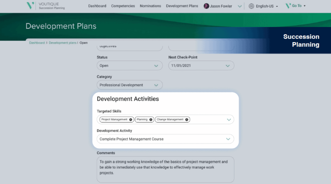 此外,它还包括一个员工技能板块。凭借多年的招聘和人才管理经验,Avature 很早之前就为招聘建立了清晰的技能标签和技能分类。这一套工具现在可用于发展规划、内容标记和继任管理——因此“基于技能的学习”功能已经存在。