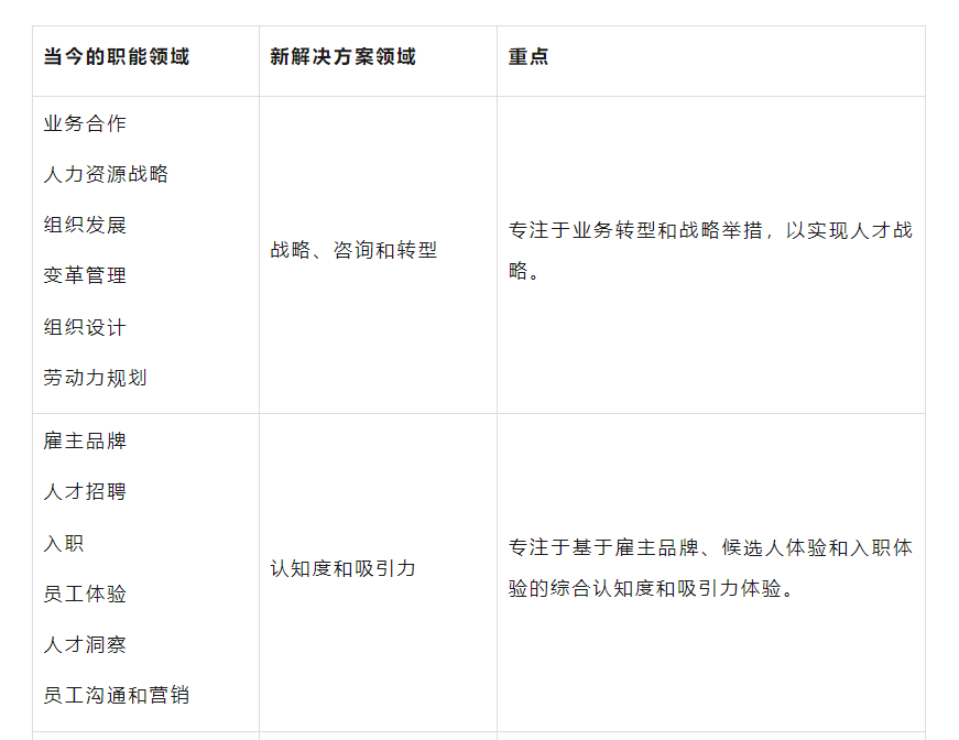 这些以解决方案为中心的团队,将与特定业务领域内的HR部门密切合作。他们的职责是与业务人力资源团队一起,积极参与并推动这些解决方案的实施。