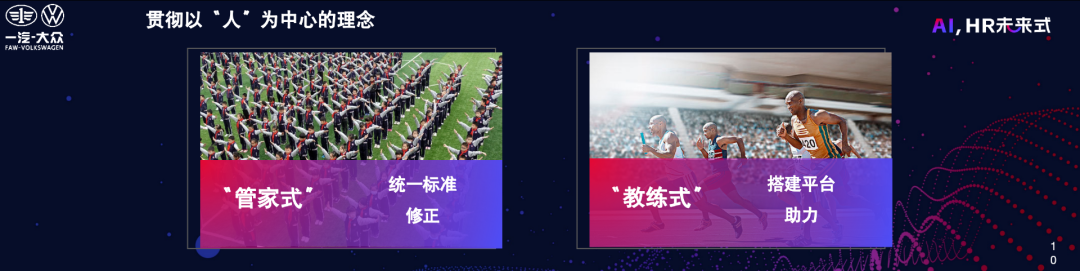 在这些背景下,我们进行了“以人为中心”的人力资源转型思考。过去,公司扮演了“管家式”角色,通过统一的政策流程和标准化工具来管理员工。未来,我们希望向“教练式”转变,为员工指明方向,搭建平台,激发他们的活力,能够相对自由地去做成长和发展,从而也为我们去迎接未来不确定性的挑战有更多的基础和储备。
