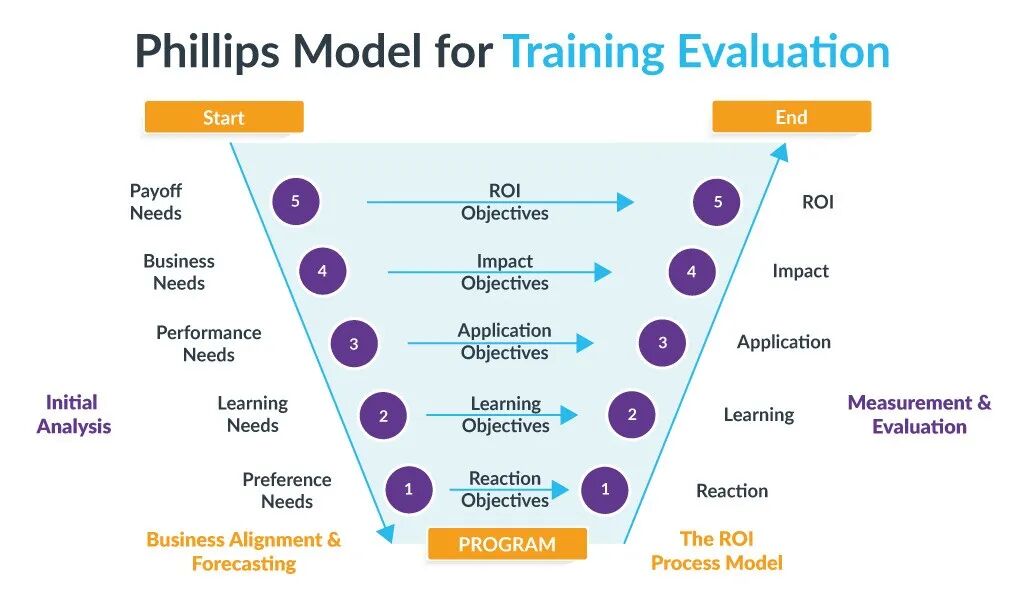 菲利普斯ROI模型提供了一种全面的方法来评估培训的有效性,从直观的反应到实际的业务结果,再到经济价值。这个模型被广泛应用于企业培训和发展领域,帮助组织衡量和证明培训项目的价值。