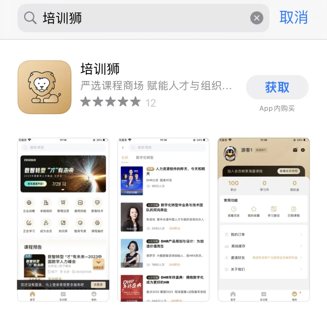 「培训狮」严选课程商城由国内人力资源行业组织DHR公会创办并运营,通过整合优质的线上线下学习内容,帮助企业更快、更准、更省地找到适合的培训资源。