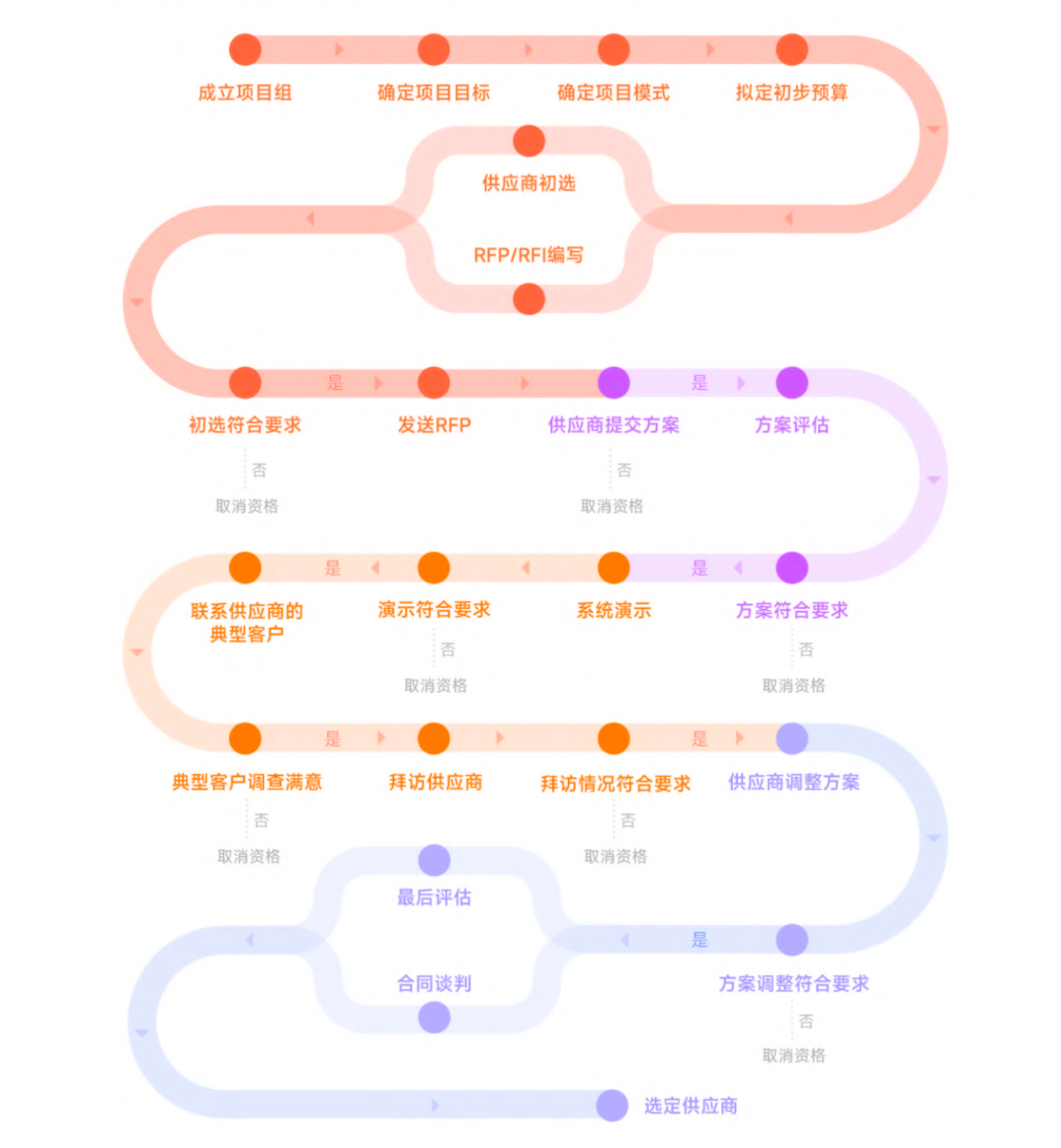 如果企业在选型时能够基本遵循图片中所示的流程进行工作,相信能更有效地达成选型目标。