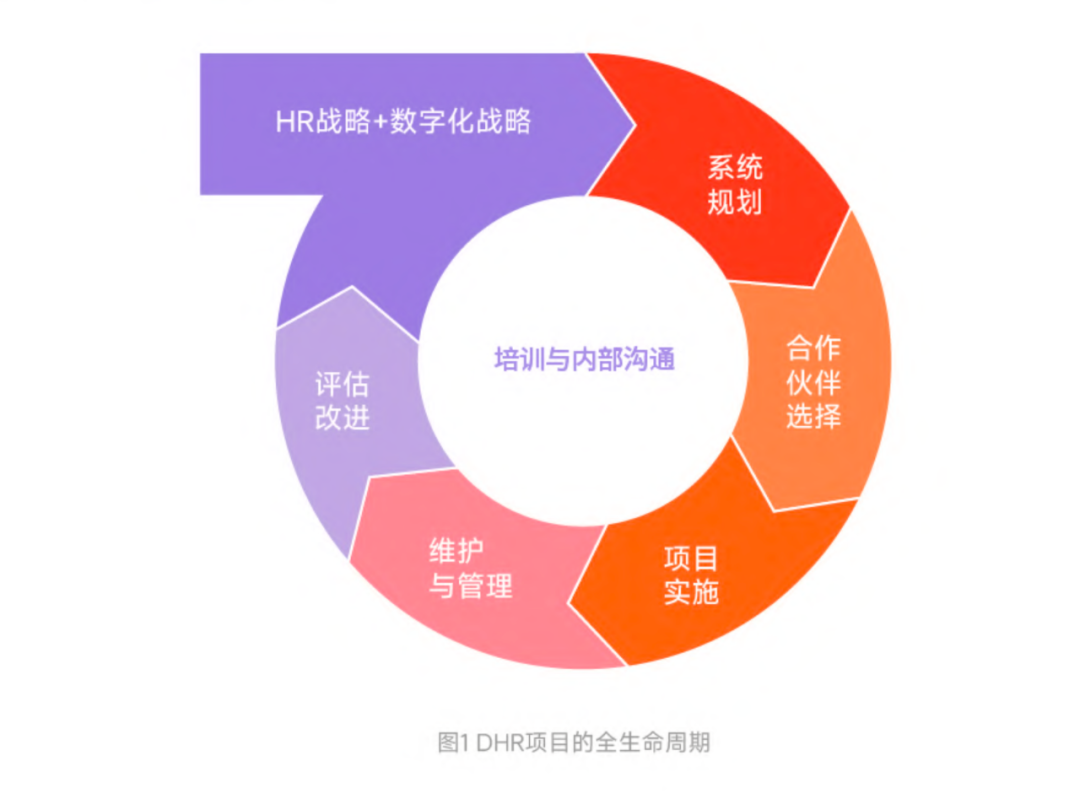 DHR解决方案不是一个简单的买来就用的软件产品,其部署过程是一个包含了系统规划、系统实施与二次开发、培训、系统维护与升级、系统运营等众多环节的复杂项目管理过程(如图1所示),其中任何一个环节出问题,都可能导致DHR解决方案在企业中实施或应用的失败。