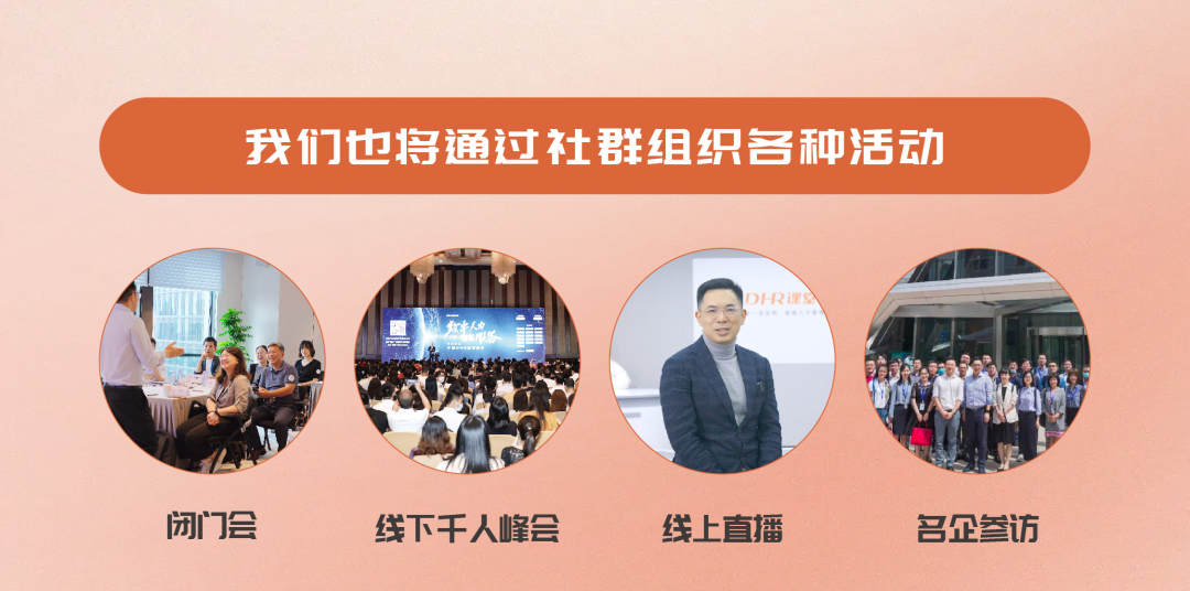 您可以通过社群,随时随地参与学习和交流,并与更多来自其他行业的DHR负责人相互建立优质人脉,提升社交品质。