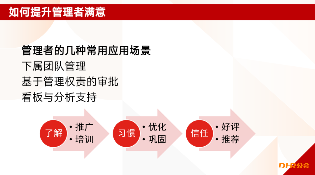 同时,管理者需要经历一个培养过程。开始时,他们需要了解平台的功能和服务,逐渐适应并巩固使用习惯。一旦习惯形成,他们可能会给予平台好评并向其他管理者推荐。