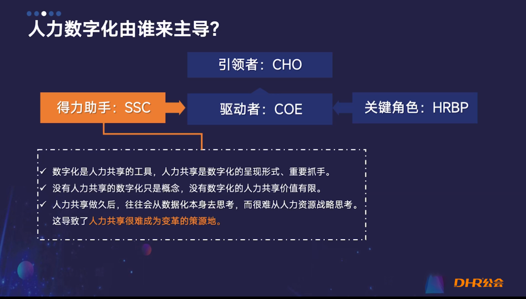 在数字化进程中,不同角色起着关键作用。HRSSC、COE和HRBP各自承担着重要责任。