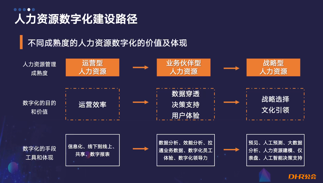 根据不同人力资源体系成熟度,分析数字化的价值体现。在中小型企业或初步重视人力资源的企业中,数字化的目的主要是提高运营效率。