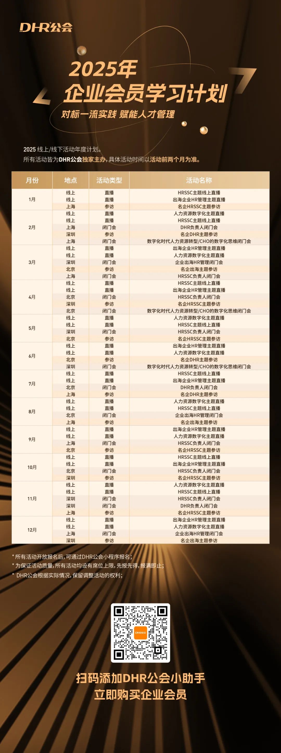 2025年,我们也会持续在上海、北京、深圳各地举办HRSSC、HR数字化、出海企业HR管理、数字化时代人力资源转型、CHO的数字化思维等主题的闭门会。